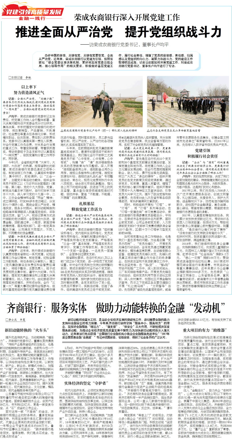 新旧动能转换重大工程,是当前全省经济发展的突破性工作,迫切需要金融的鼎力支持和金融安全的有力保障。今年来,齐商银行始终坚持“服务中小、服务地方”的理念,发挥好金融服务“增活力”、“强支撑”、“保安全”三大作用,不断挖掘并深度服务新动能,为推动全省经济实现高质量发展不懈努力,为加快新旧动能转换注入强大动力。